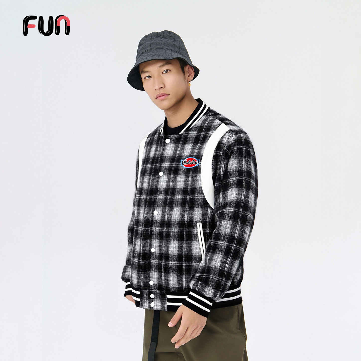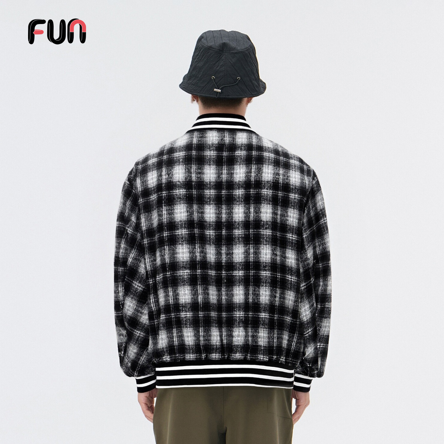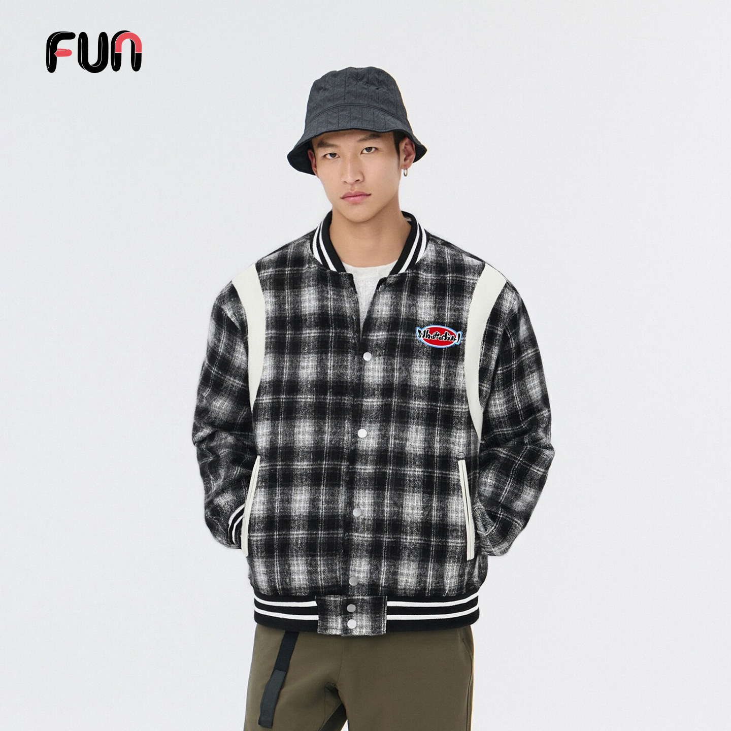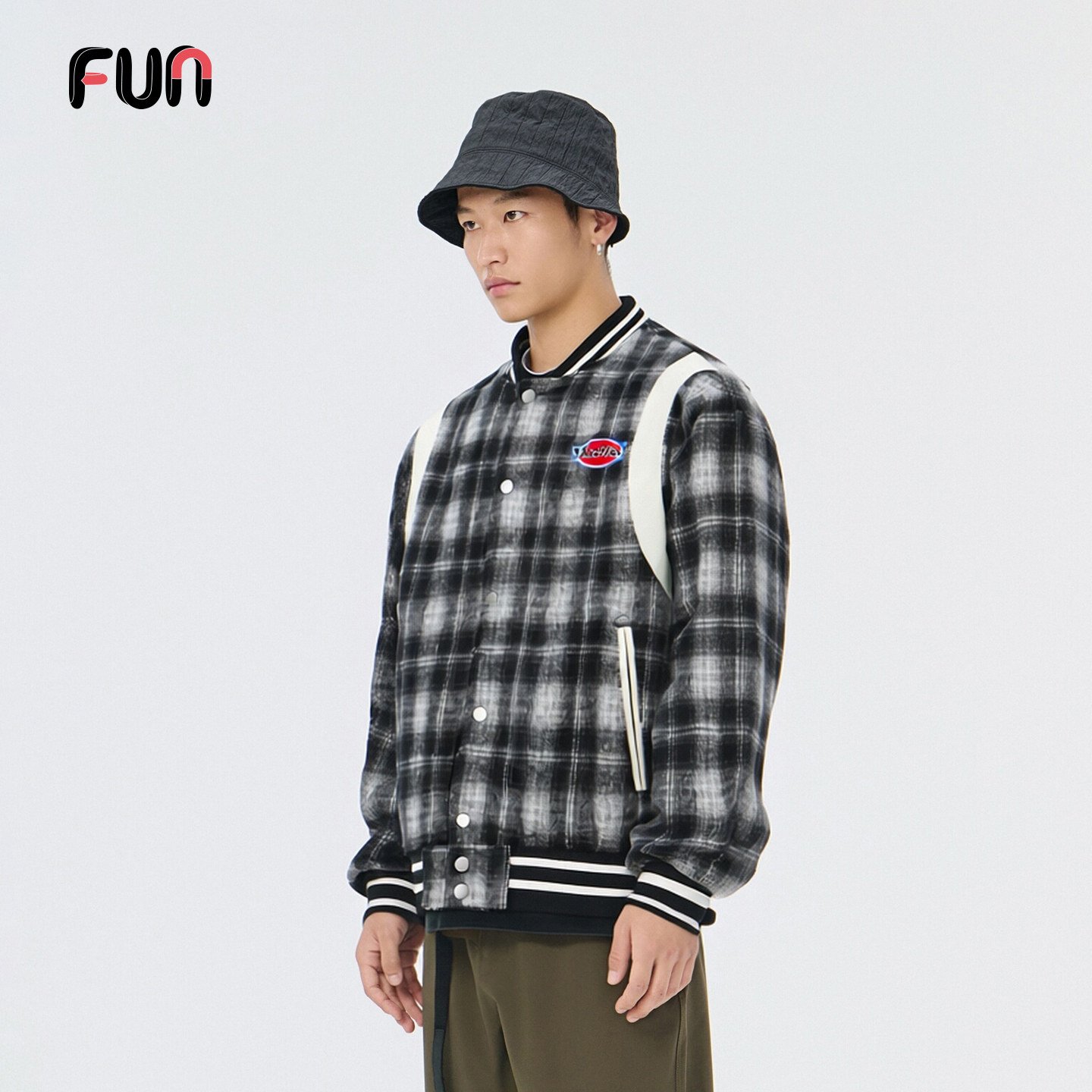 Fun美式复古格纹宽松棒球夹克