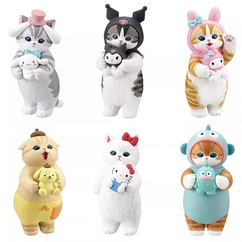 日系奇谭猫扭蛋猫福珊迪鲨鱼猫美乐蒂库洛米丑鱼猫咪摆件盲盒玩具