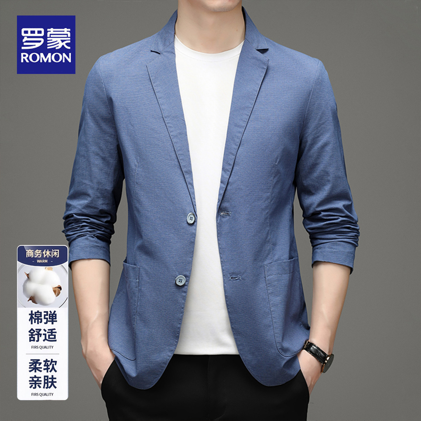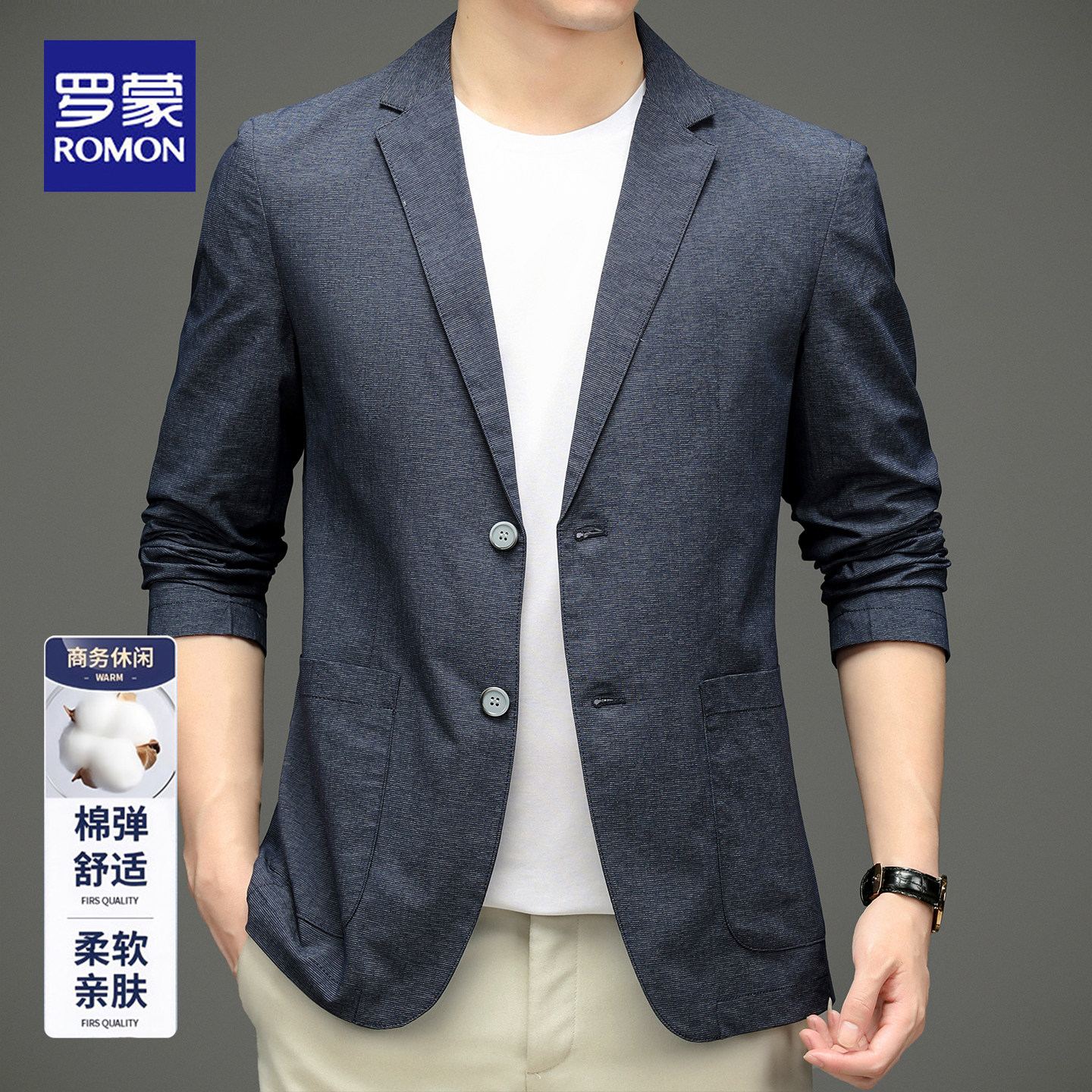 罗蒙2026春新款秋商务休闲西服轻奢棉弹舒适单西外套轻便小西装男