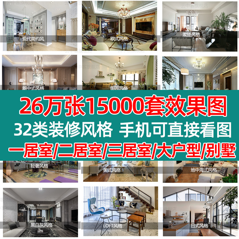 装修设计效果图三居室房屋家装室内房子小户型客厅卧室吊顶简约全
