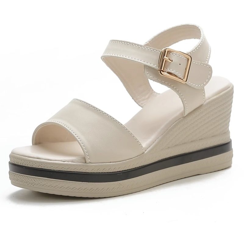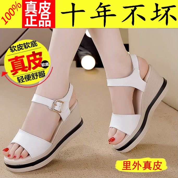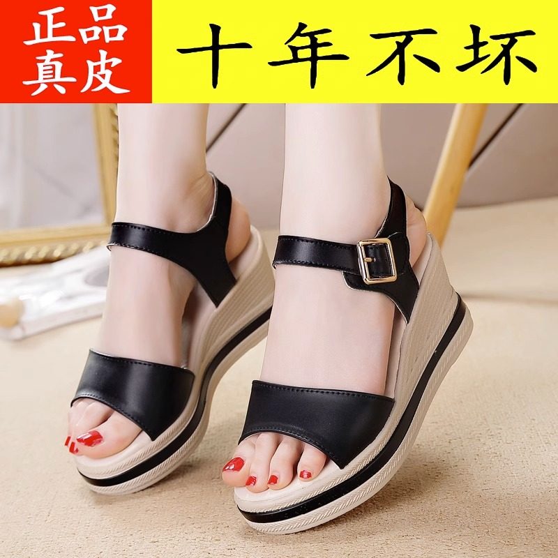 品牌坡跟真皮凉鞋女鞋增高凉拖鞋