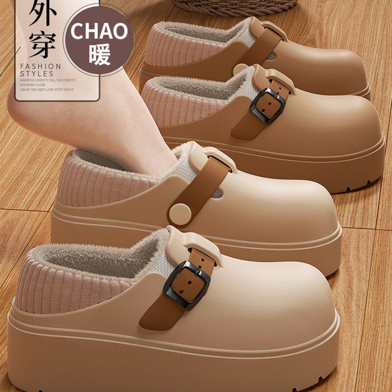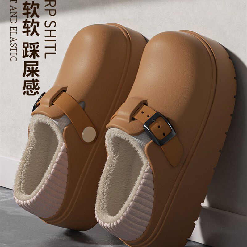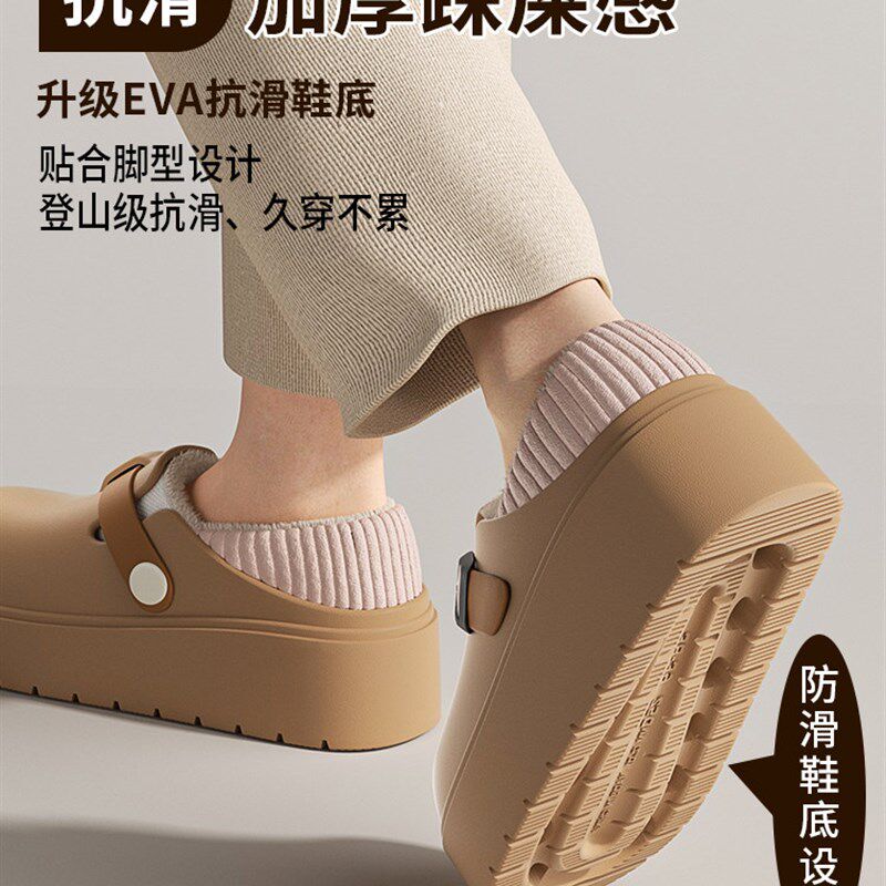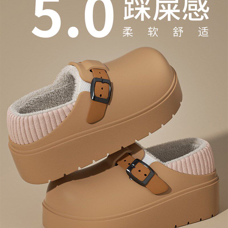 棉拖鞋女士踩屎感防水外穿2025新款冬季包跟厚底增高保暖棉鞋女士
