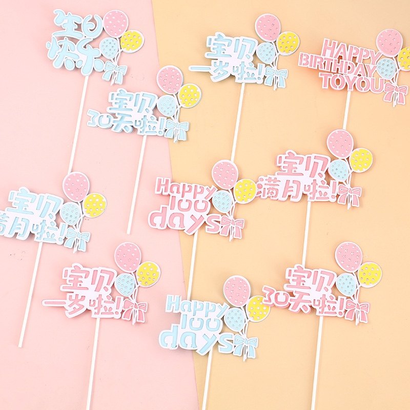 生日快乐插牌 HB插牌 蛋糕装饰满月一岁宝宝周岁30天百天蛋糕插件