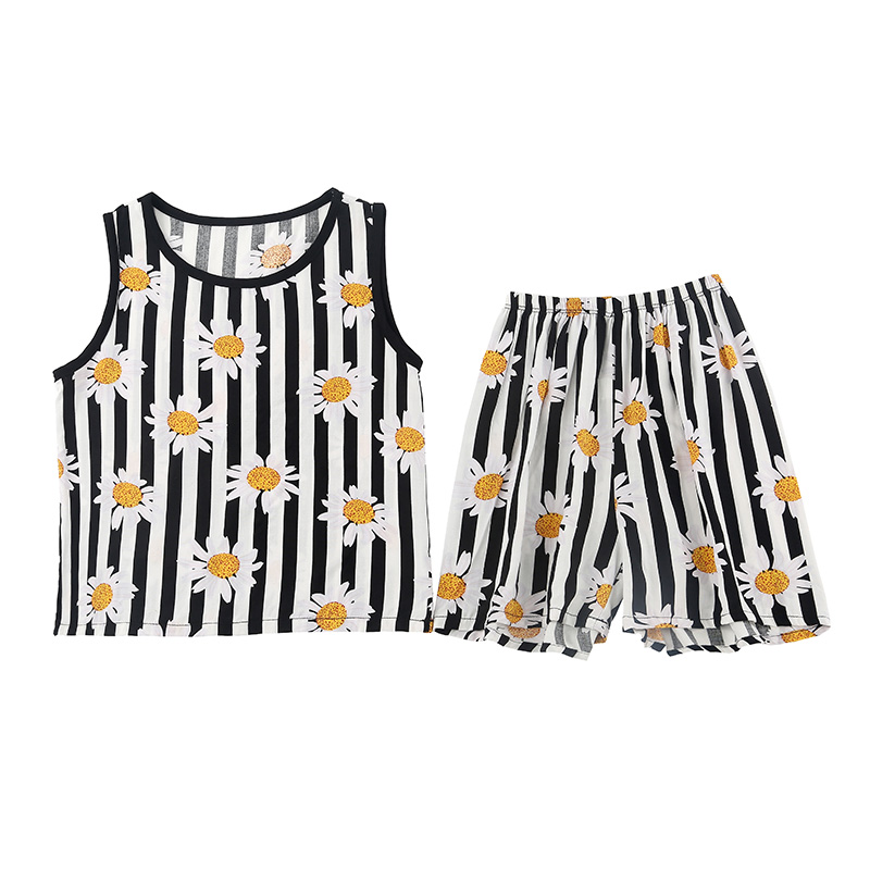 儿童睡衣夏季棉绸背心套装男女中童宝宝短裤空调服小孩薄款家居服