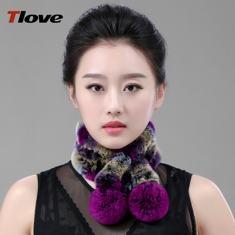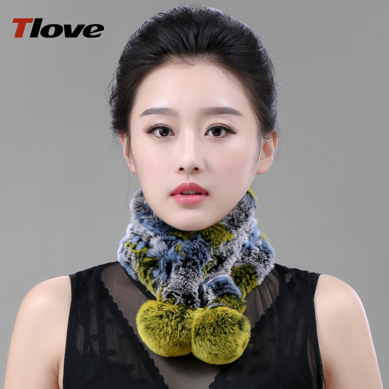 tlove新款獭兔毛围巾冬季时尚潮皮草围巾女冬天保暖短款围脖两球