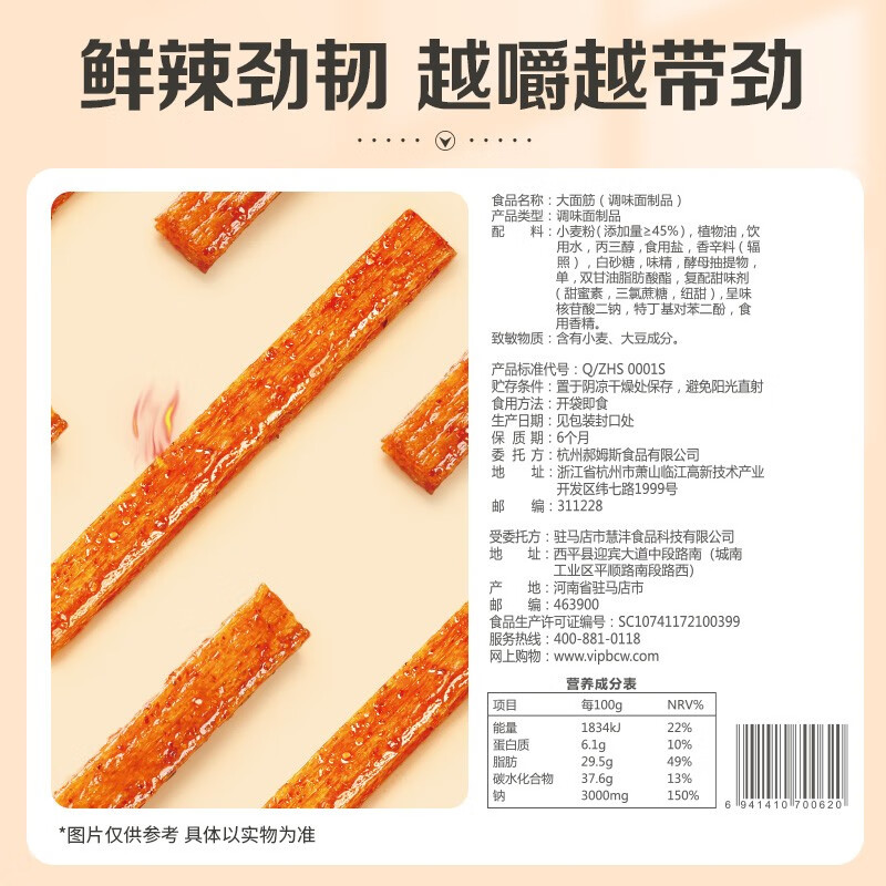 百草味大面筋辣条100g儿时怀旧麻辣小吃袋装经典网红休闲小零食