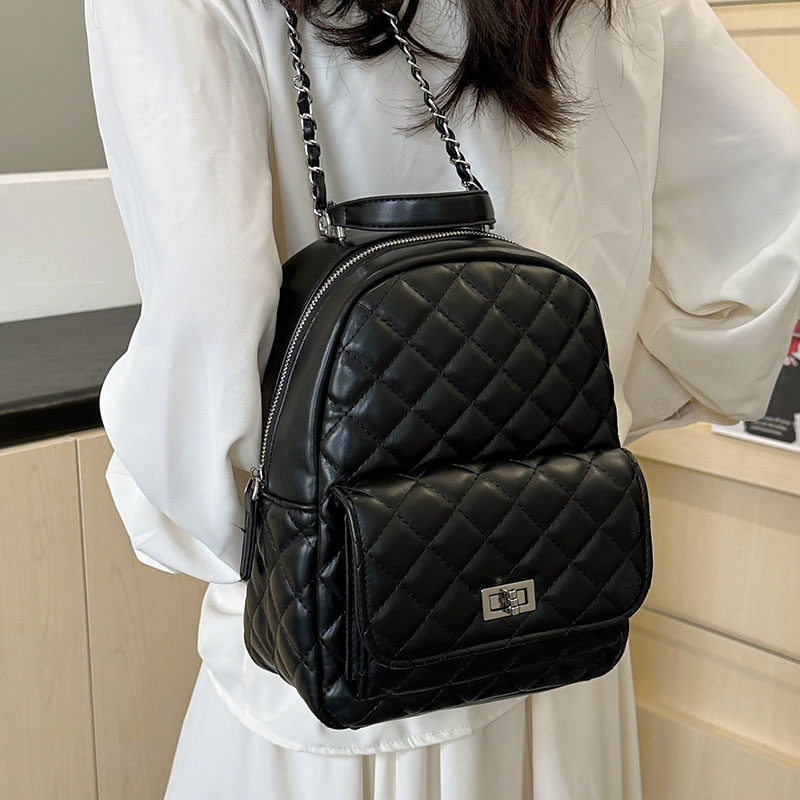 学生上课通勤双肩包女韩版时尚小香风菱格链条包2025潮流百搭女包