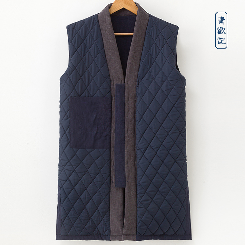 原创冬季男士亚麻马甲加厚宽松棉衣中长款大码马褂休闲禅服居士服