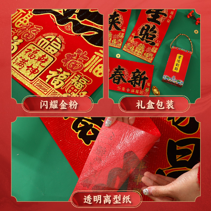 新年对联2024新款龙年绒u布自粘春联过年春节农村大门装饰新春对