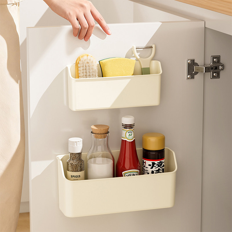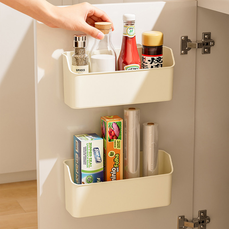 厨房柜门内侧收纳盒壁挂式清洁用品洗洁精锡纸保鲜膜垃圾袋置物架