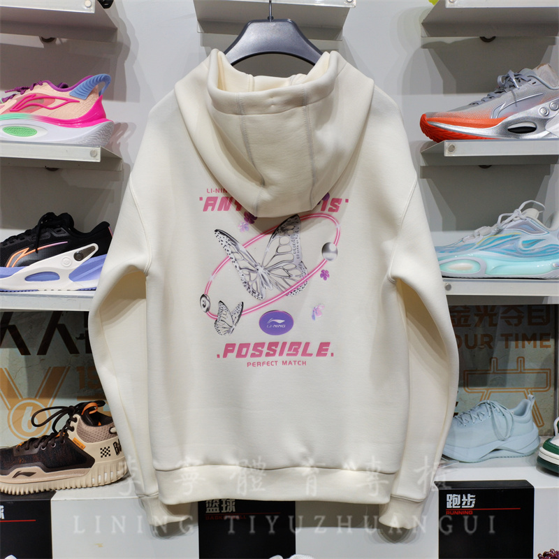李宁2024春季新品卫衣 运动生活系列女子套头宽松连帽上衣AWDU042
