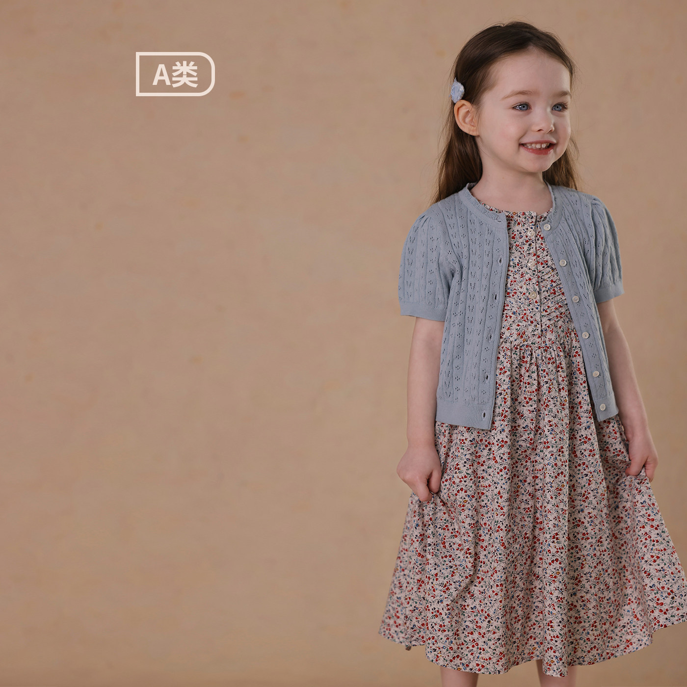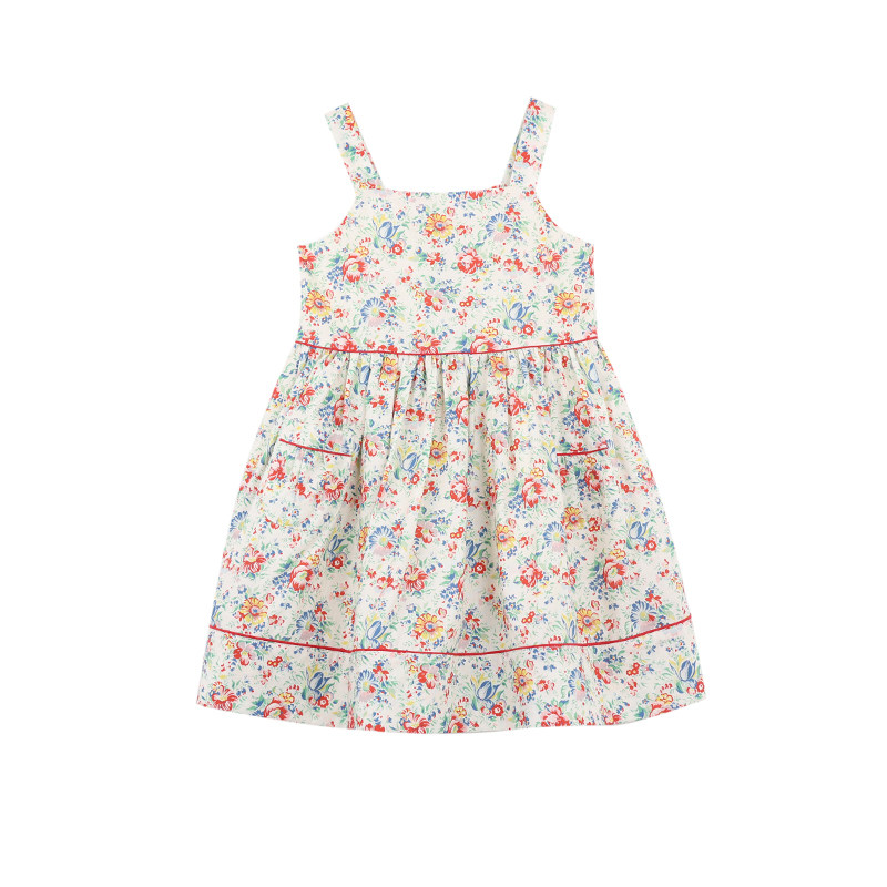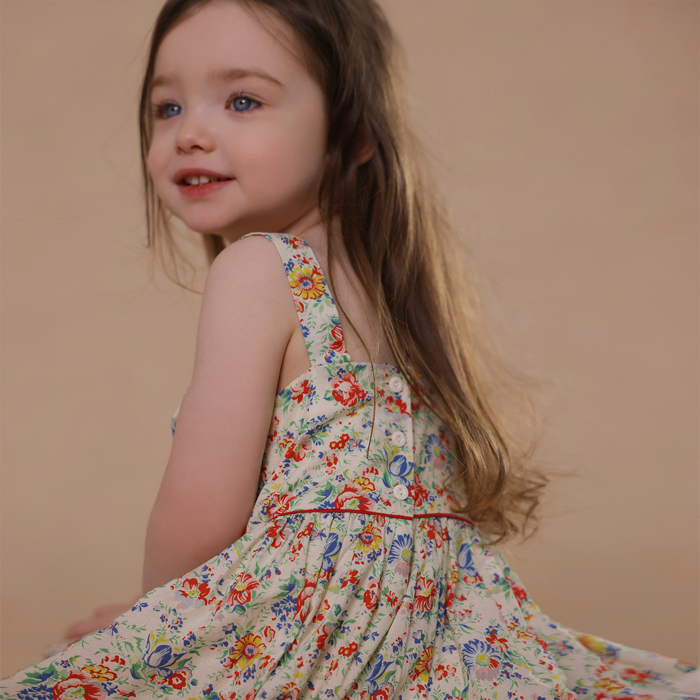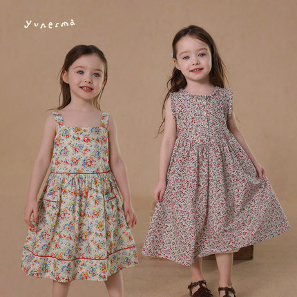允儿妈女童夏季新款碎花复古连衣裙宝宝洋气公主裙儿童背心裙长裙