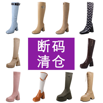 清仓断码捡漏厚底粗跟高筒长靴女靴子小个子超高跟不过膝显瘦靴子