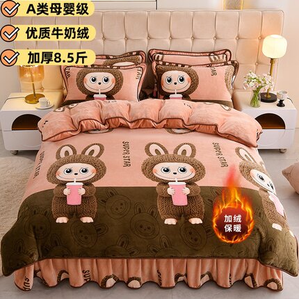 冬季加厚牛奶绒四件套珊瑚绒2025新款双面法兰绒床上用品被套床裙