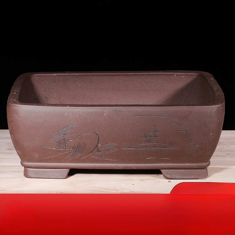 紫砂花盆大口径长方形马槽盆景花盆阳台种菜盆陶瓷大花盆画册式