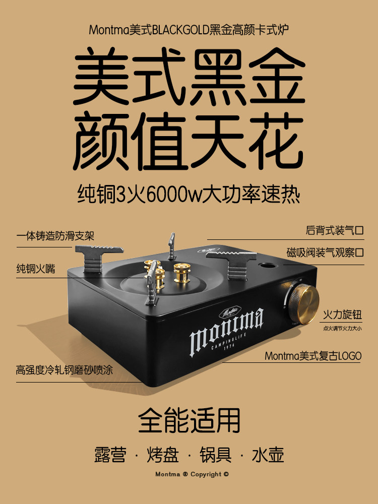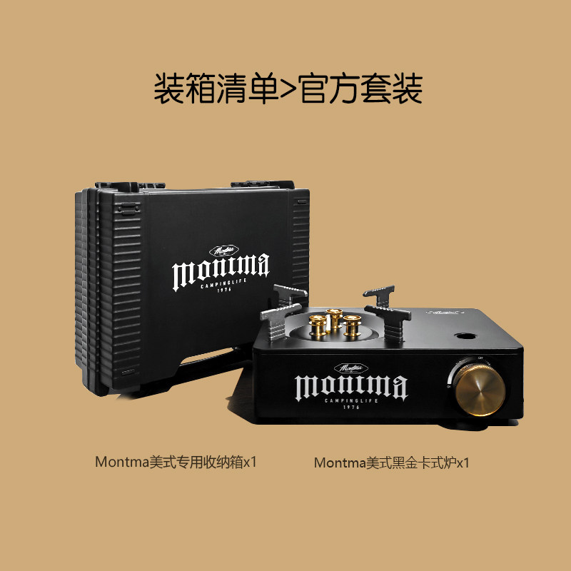 Montma美式黑金卡式炉三头大功率丁烷气便捷烧水煮咖啡烤盘露营炉