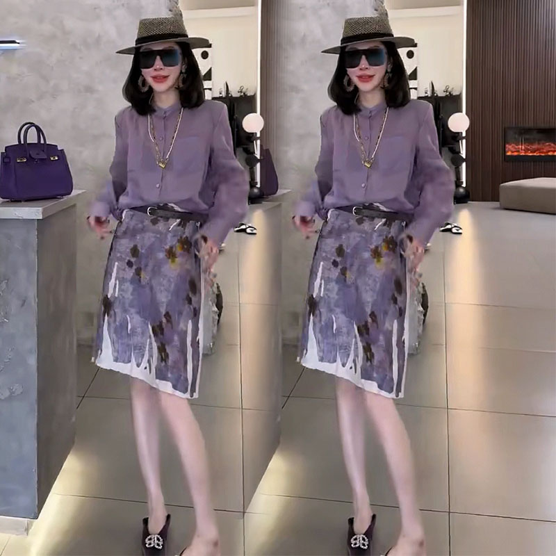 时尚套装女2025夏季洋气设计感防晒长袖衬衫半身裙别致显瘦两件套