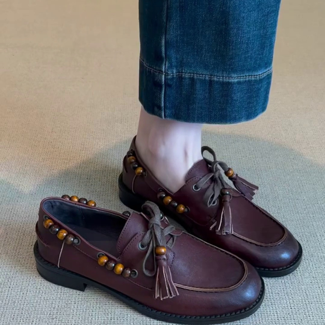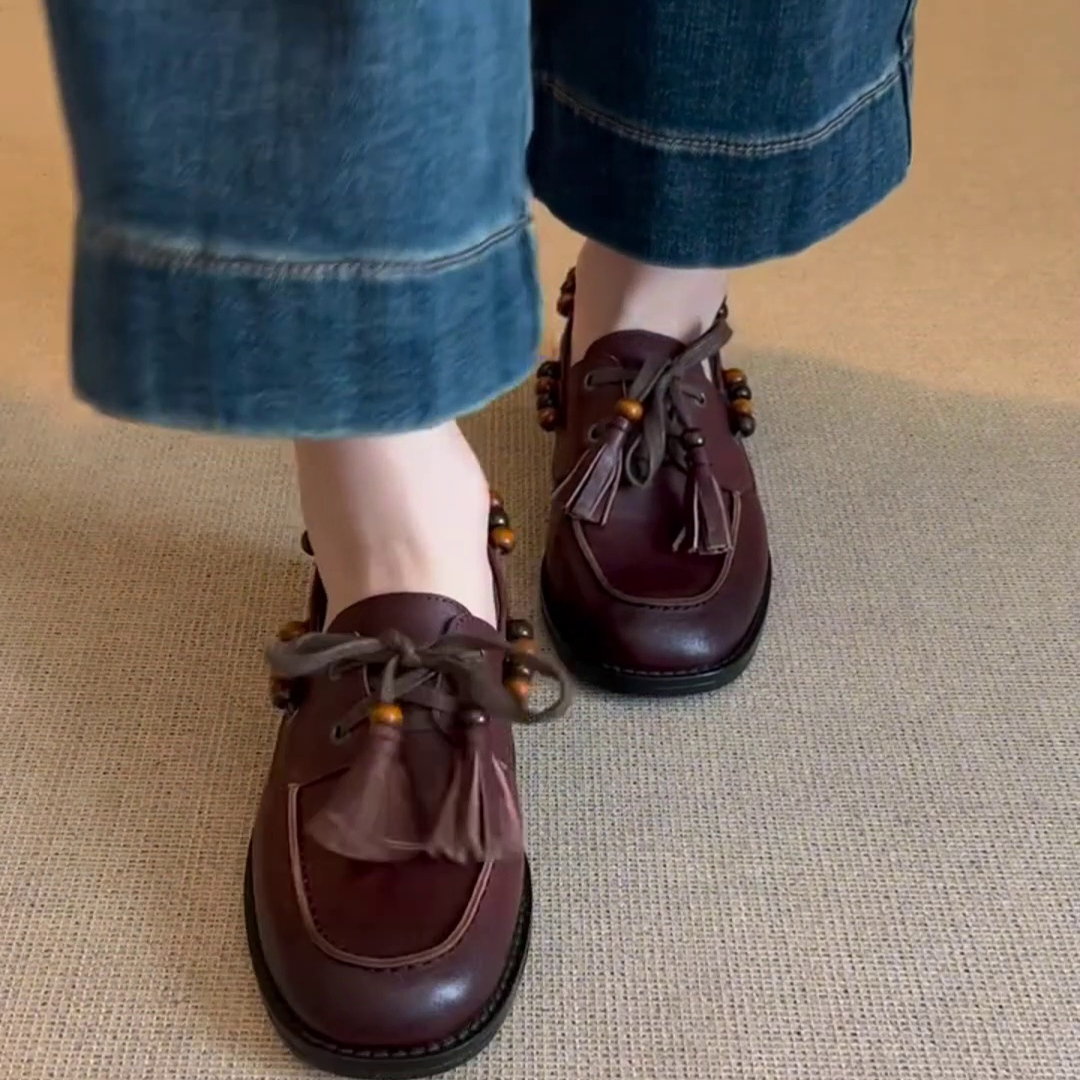 全羊皮~法式复古风时尚休闲舒适简约百搭粗跟通勤圆头时装单鞋女3