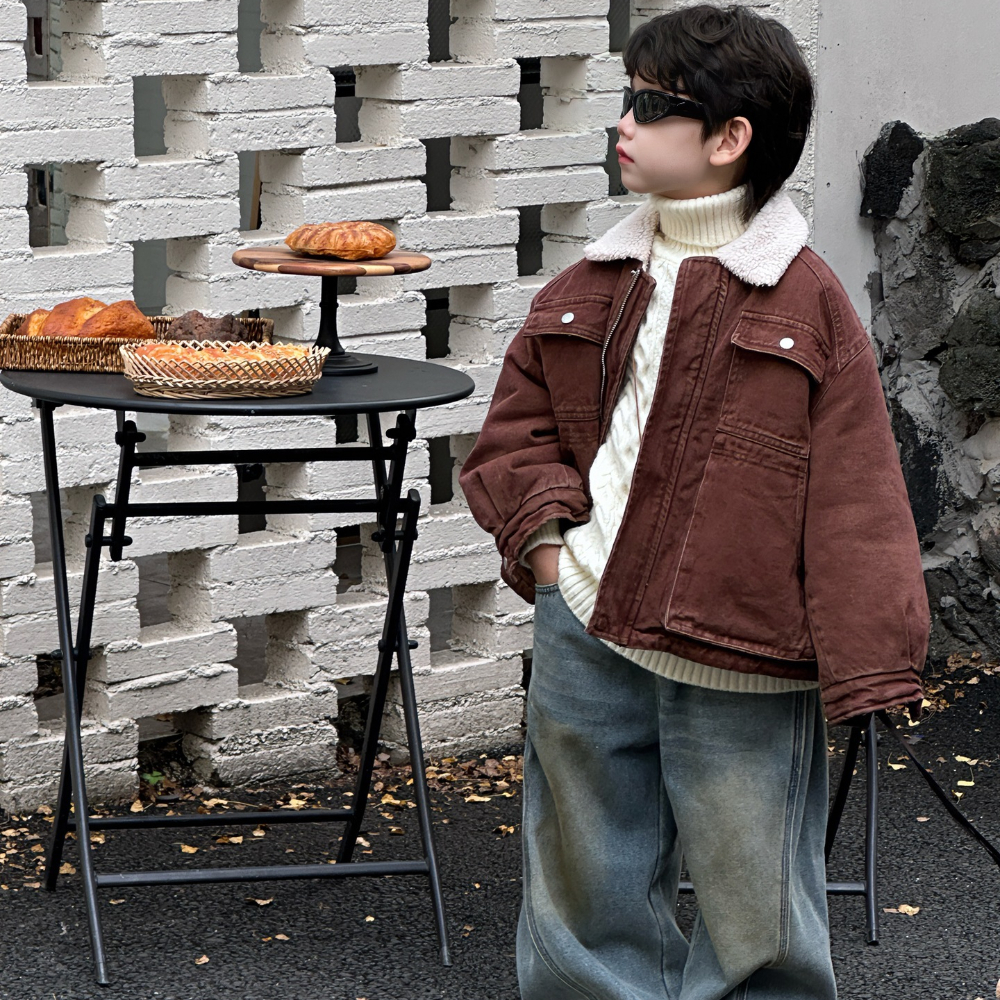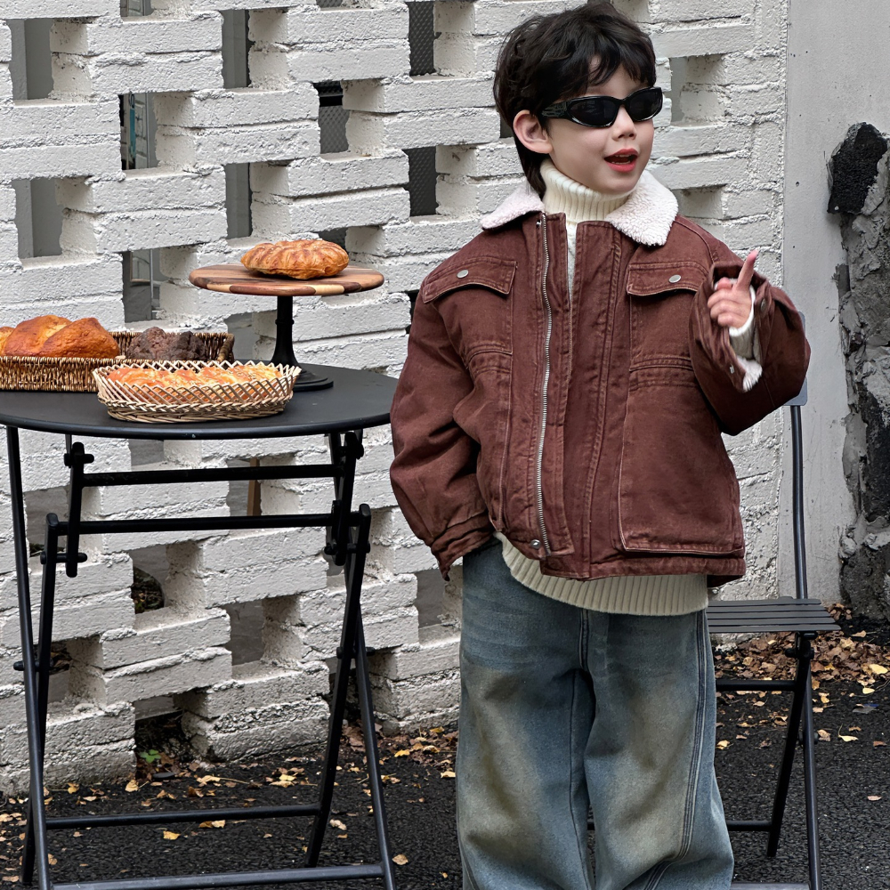 男童外套冬装男宝宝洋气保暖夹克衫男孩冬季新款复古加绒牛仔上衣