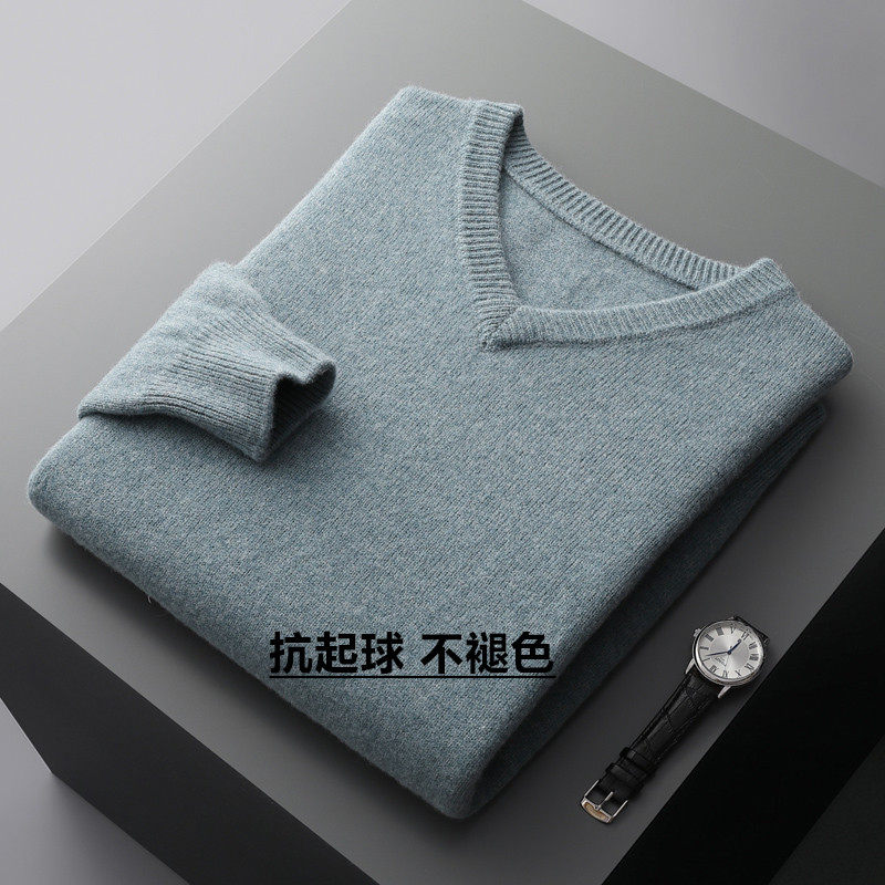 100%纯羊毛衫男士V领加厚毛衣