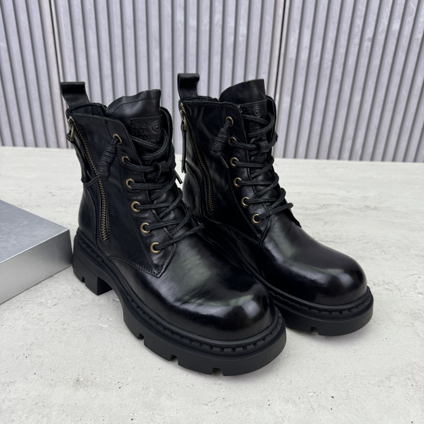 欧洲站2025秋季新款欧货真皮系带马丁靴厚底高跟侧拉链短筒女靴潮