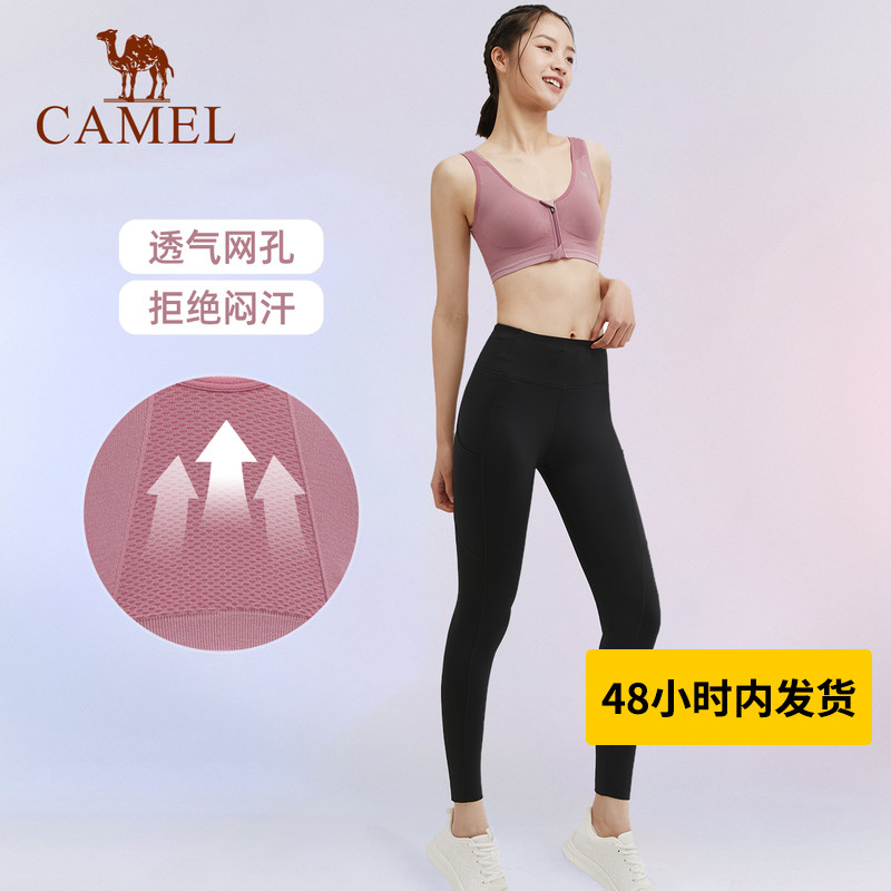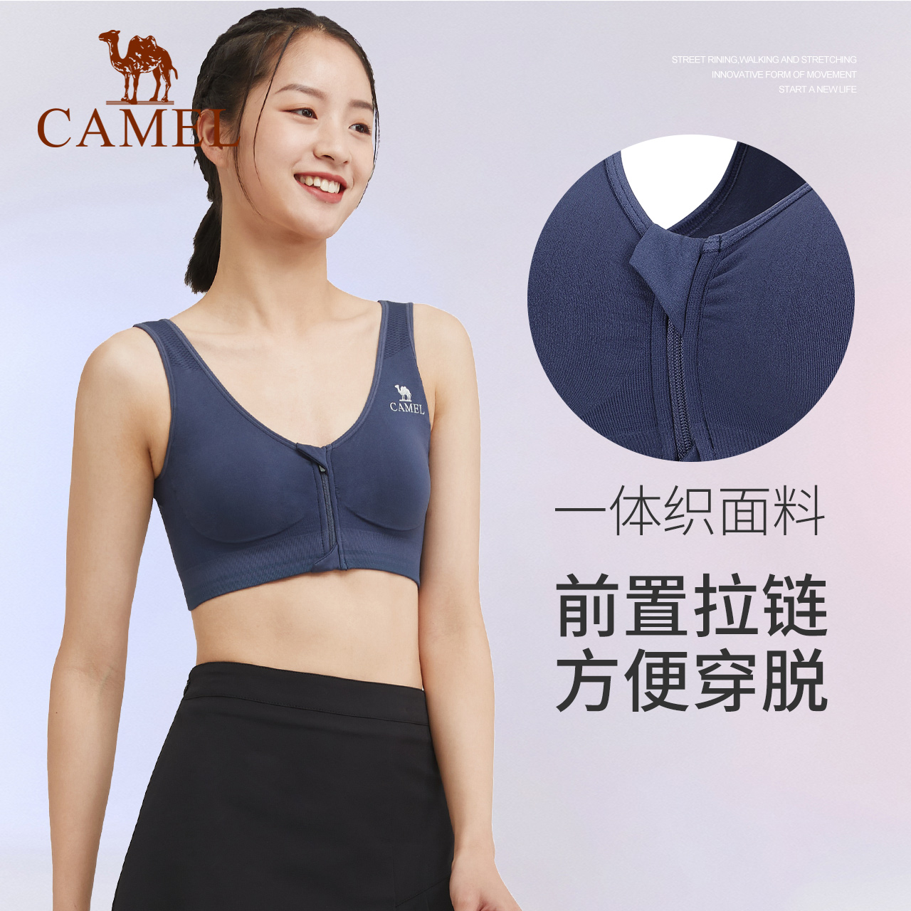 骆驼健身运动文胸女防震跑步内衣中高强度支撑前拉链瑜伽美背背心