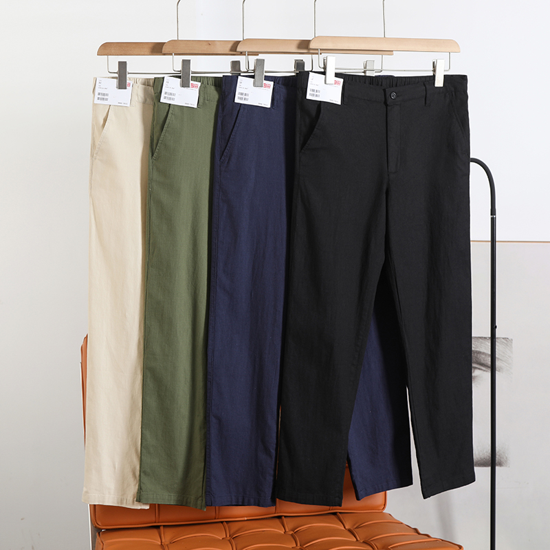 线下199!清爽亚麻薄款透气休闲裤男外贸单夏季直筒修身纯色长裤