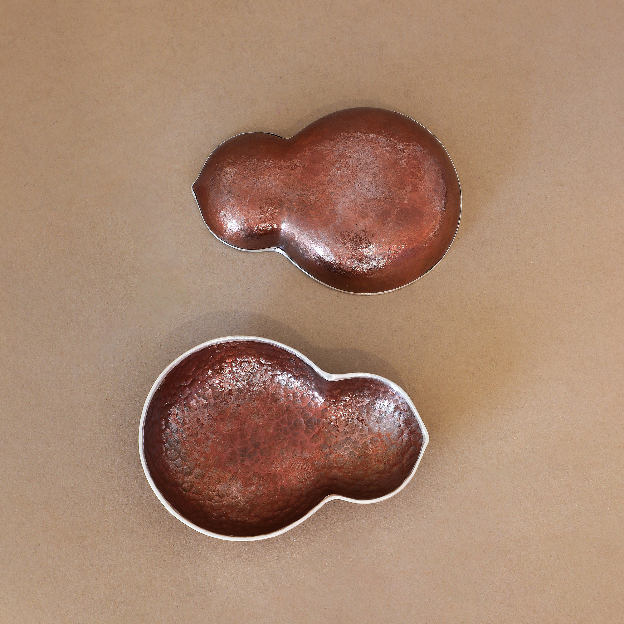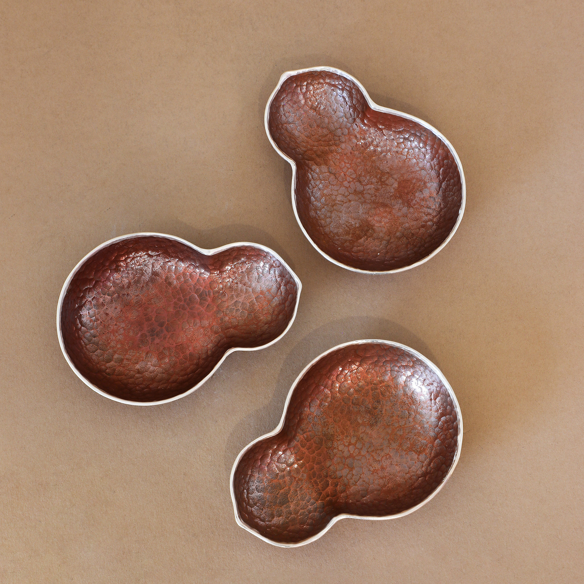 纯银时代包银边葫芦紫铜茶托复古杯垫中式手工锤纹隔热小杯托配件