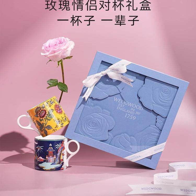 【新婚礼物】现货秒发WEDGWOOD威基伍德玫瑰礼盒马克对杯情侣水杯