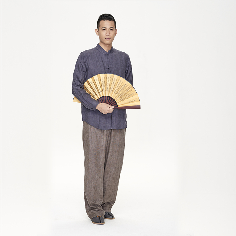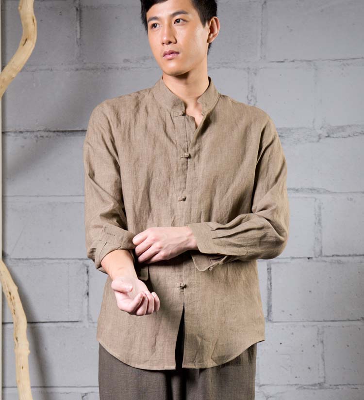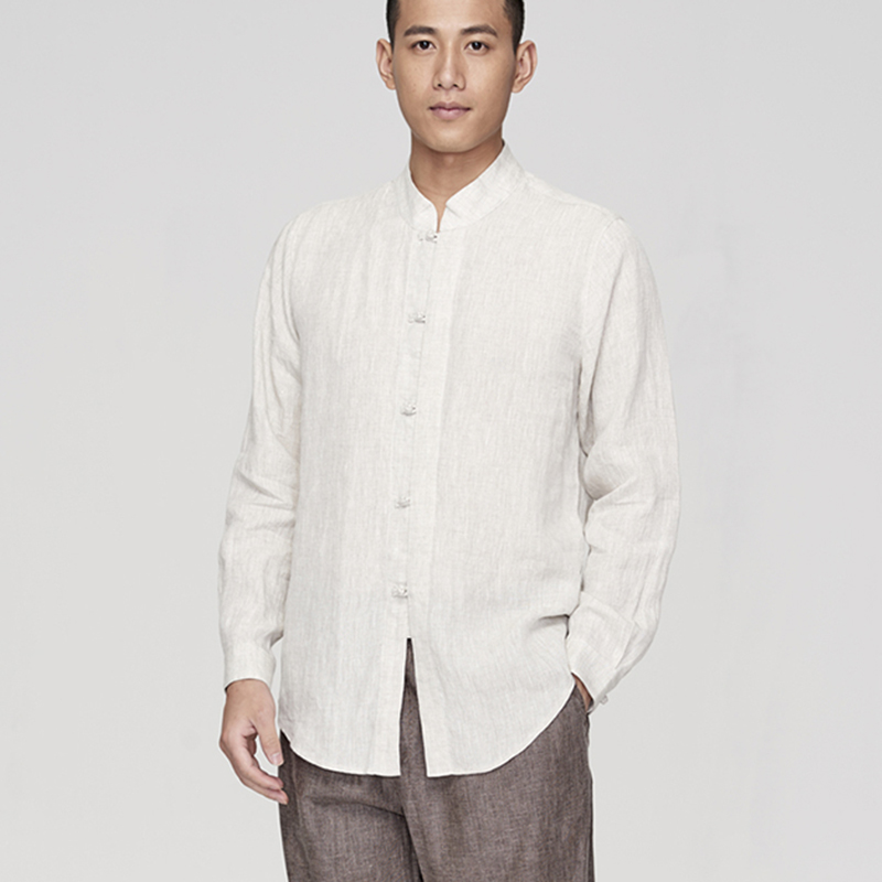 慈缘秋冬季男装上衣原创中国风唐装手工盘扣衬衣长袖立领休闲衬衫