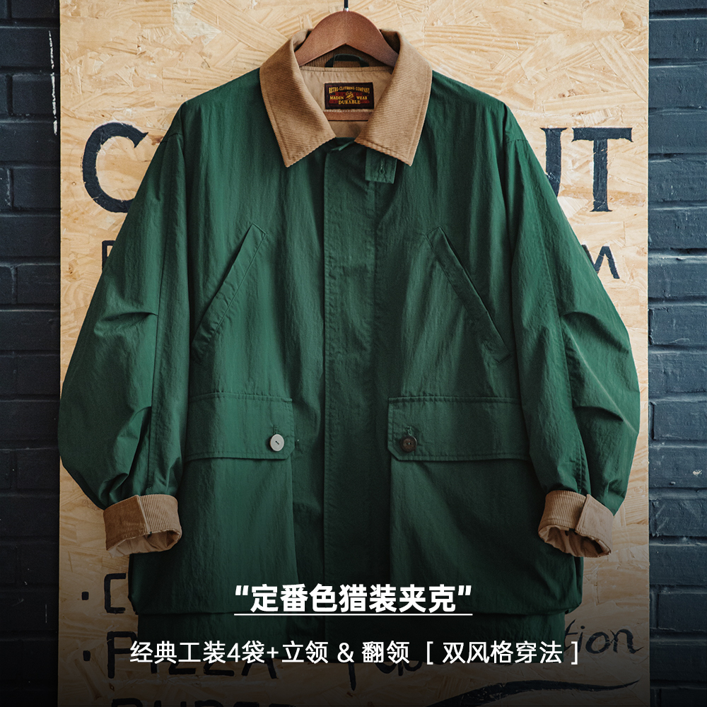 马登工装美式复古多口袋猎装夹克宽松撞色翻领中长款风衣外套男秋