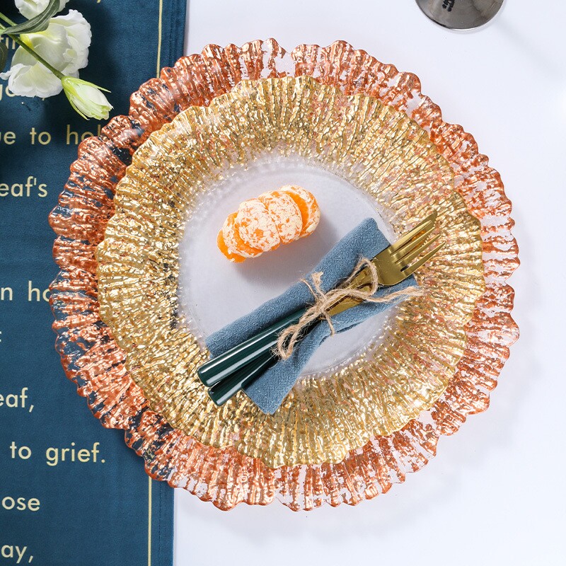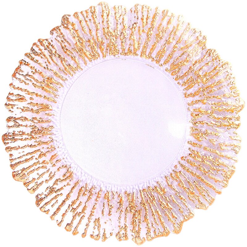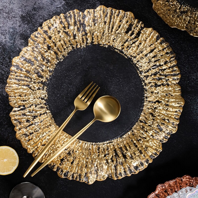 北欧太阳花树纹玻璃果盘金色电镀盘子珠子盘托盘水晶干果盘水果盘