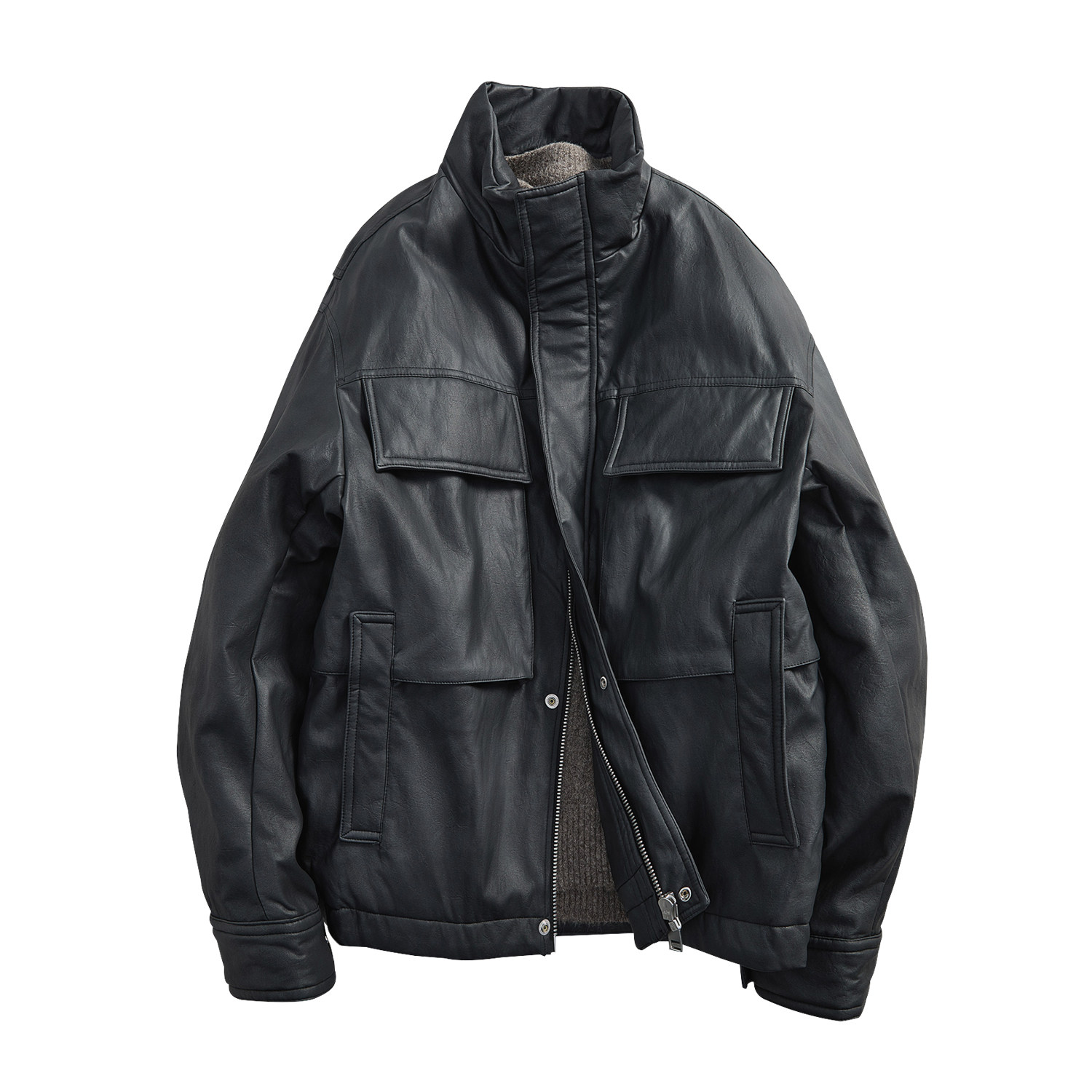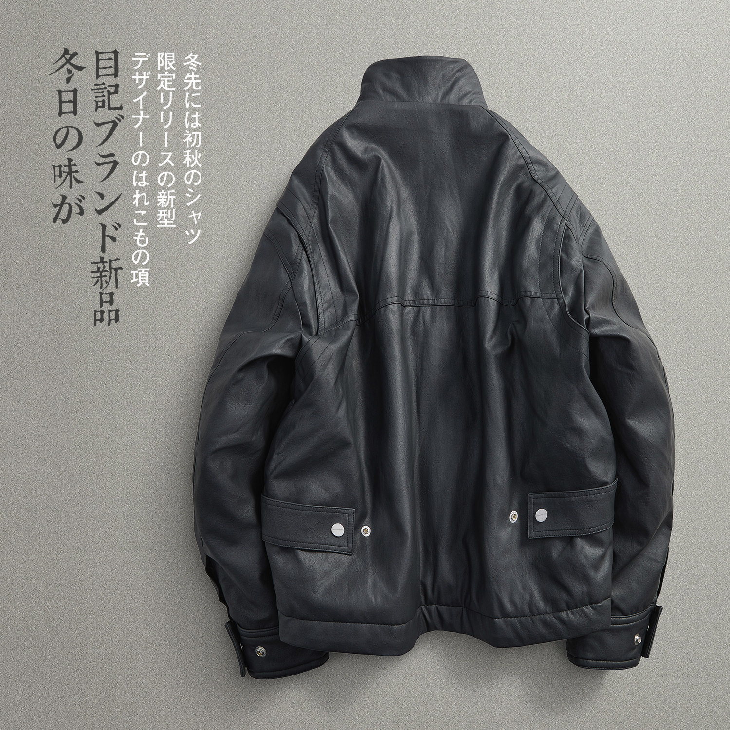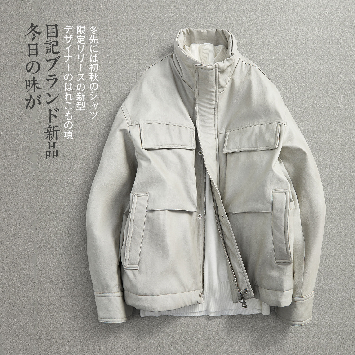 目记【90白鸭绒】冬季日系复古 廓形PU皮防风工装羽绒服外套 男