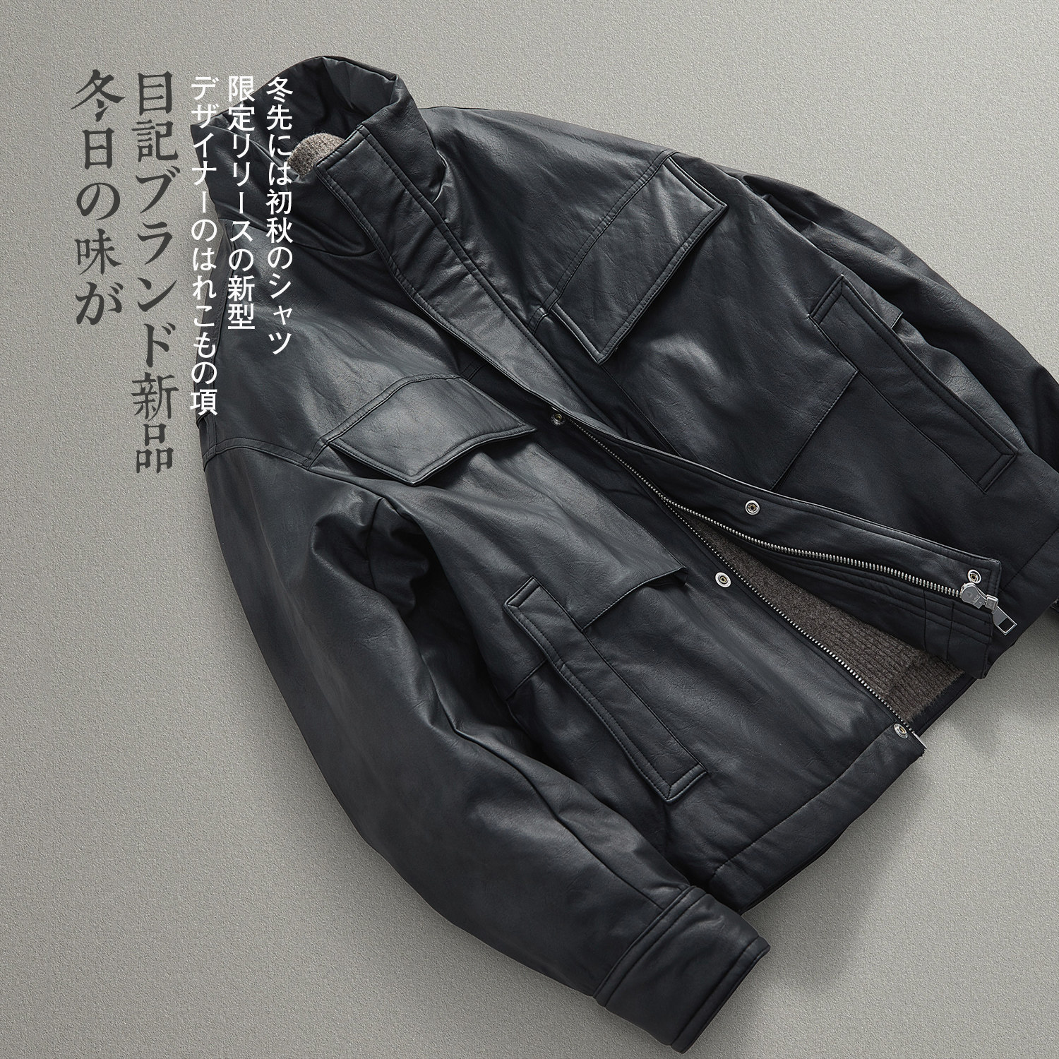 廓形PU皮防风工装羽绒服外套男