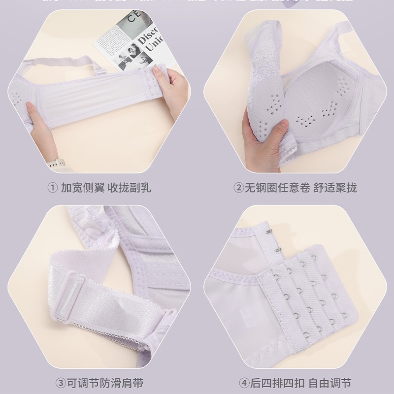 夏季文胸超轻薄内衣女无钢圈大胸显小胸聚拢抹胸调整型透气洞洞杯