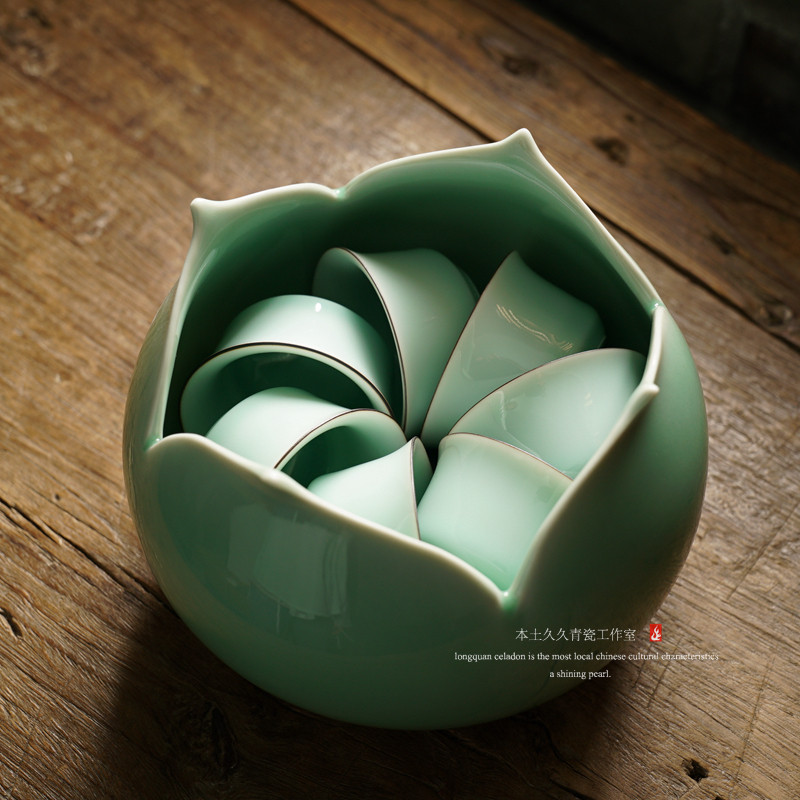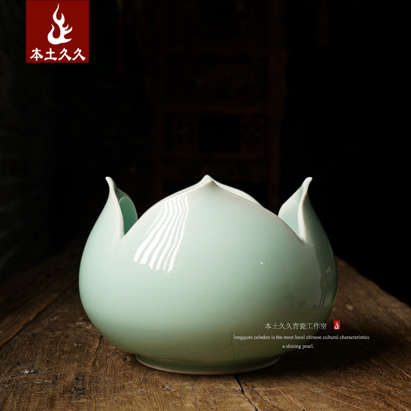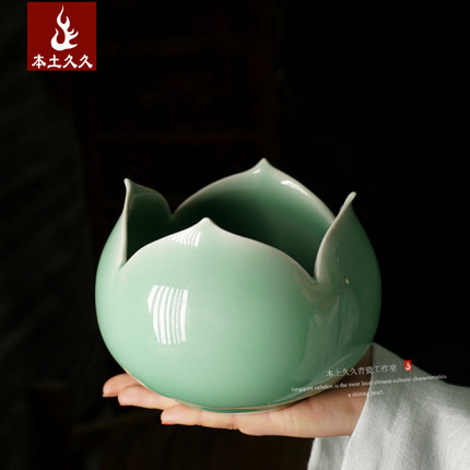 【觅道】龙泉青瓷家用茶洗 渣斗陶瓷大号笔洗莲花洗 茶室花插摆件