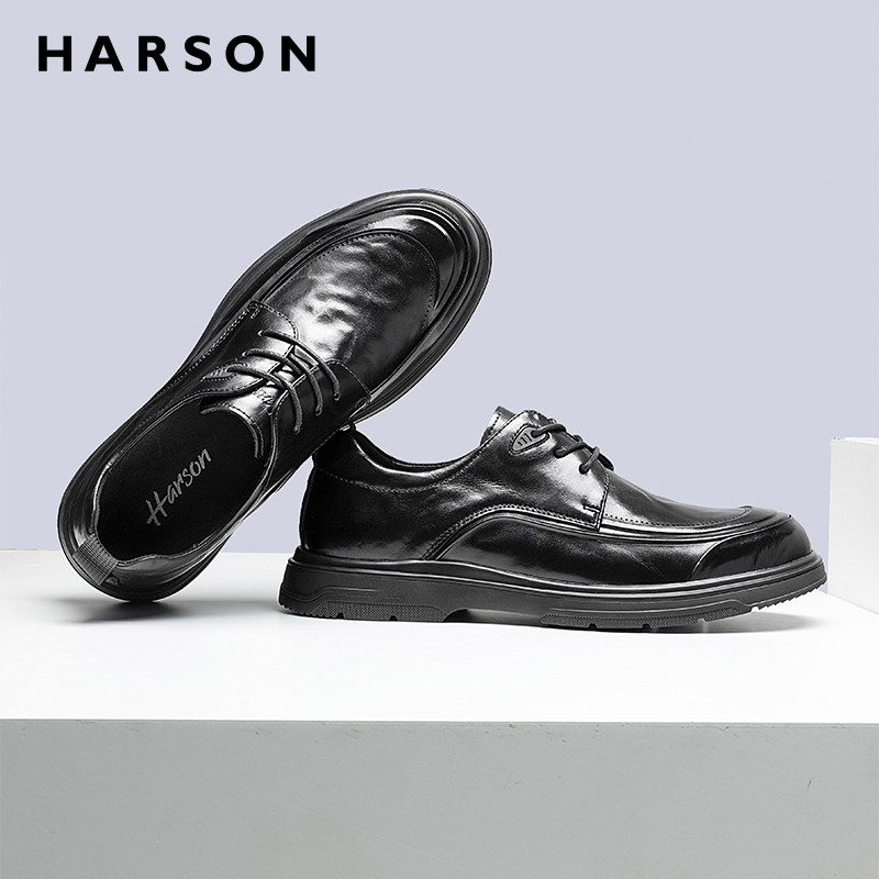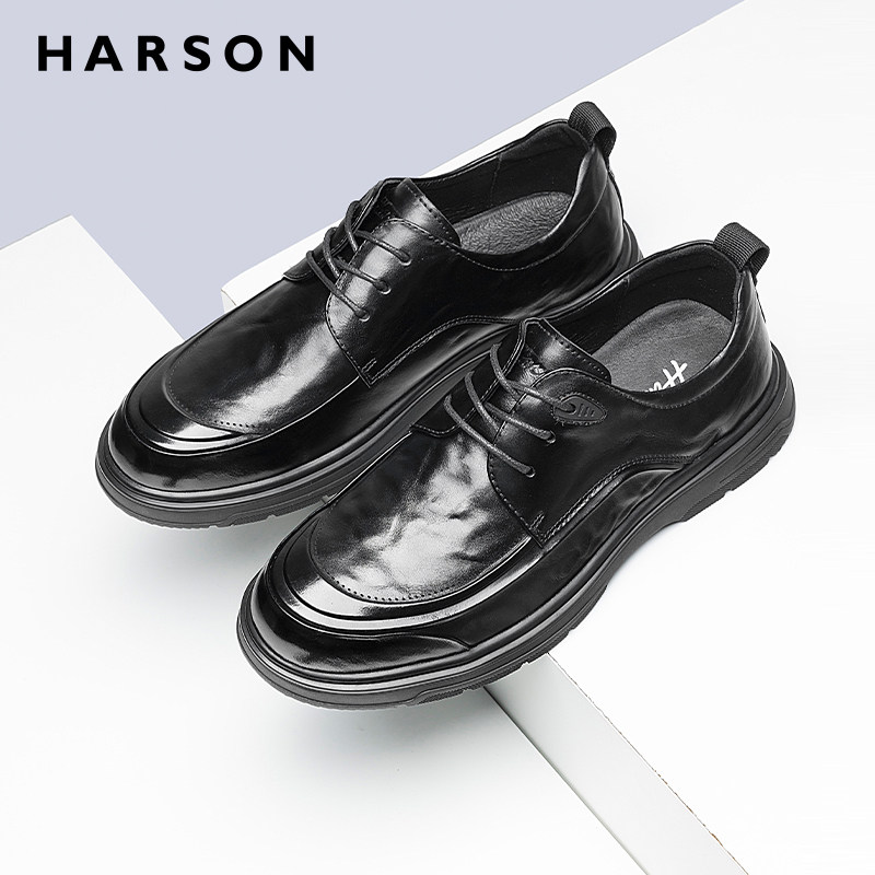 哈森男鞋春季新款商务休闲皮鞋男增高软底商务正装鞋真皮爸爸鞋子