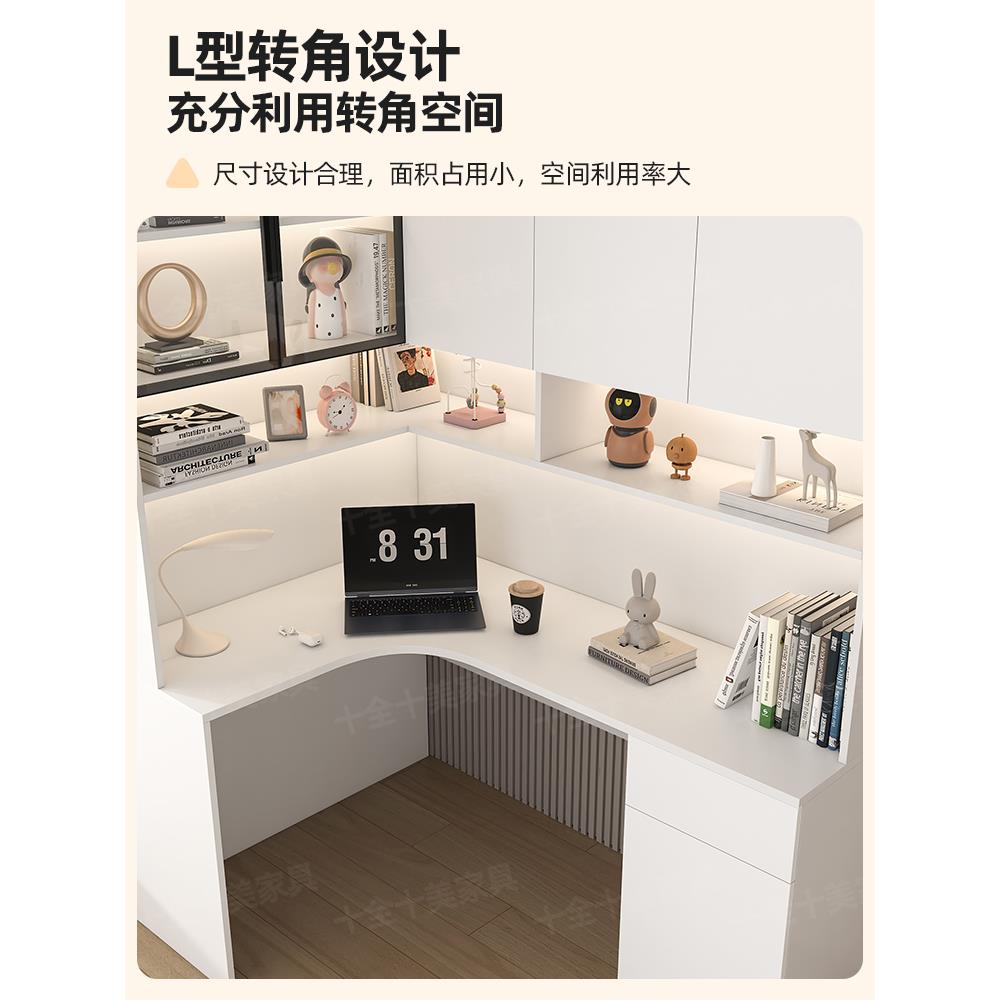 转角书桌书架一体桌书柜组合家用学生写字桌卧室办公桌L型电脑桌