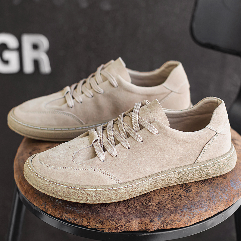 2025夏季新款休闲鞋男低帮百搭反绒皮韩版小众真皮板鞋平底潮鞋子