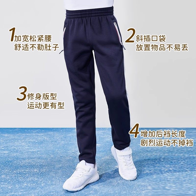 伊顿纪德加绒加厚运动裤男女童直筒/束脚学生秋冬运动校裤22Y901