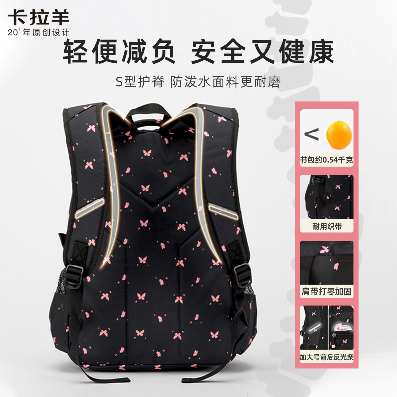 卡拉羊中学生书包女小学生三到九年级双肩旅行背包大容量学生书包