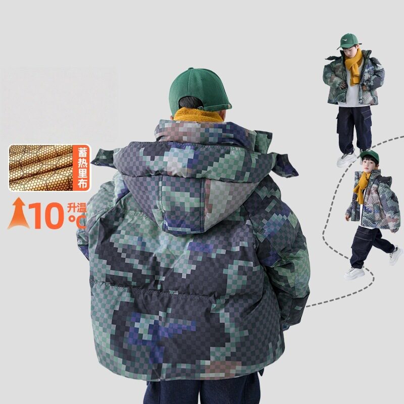 男童迷彩羽绒棉服冬装帅气中大童宽松休闲棉袄小男孩加厚保暖外套