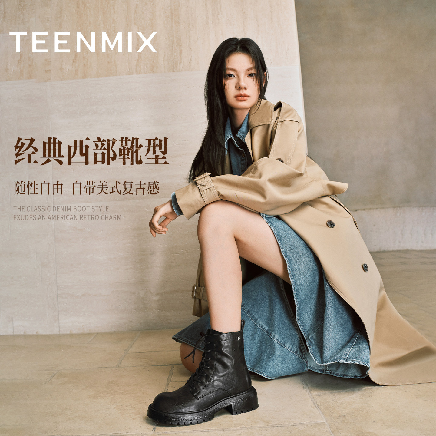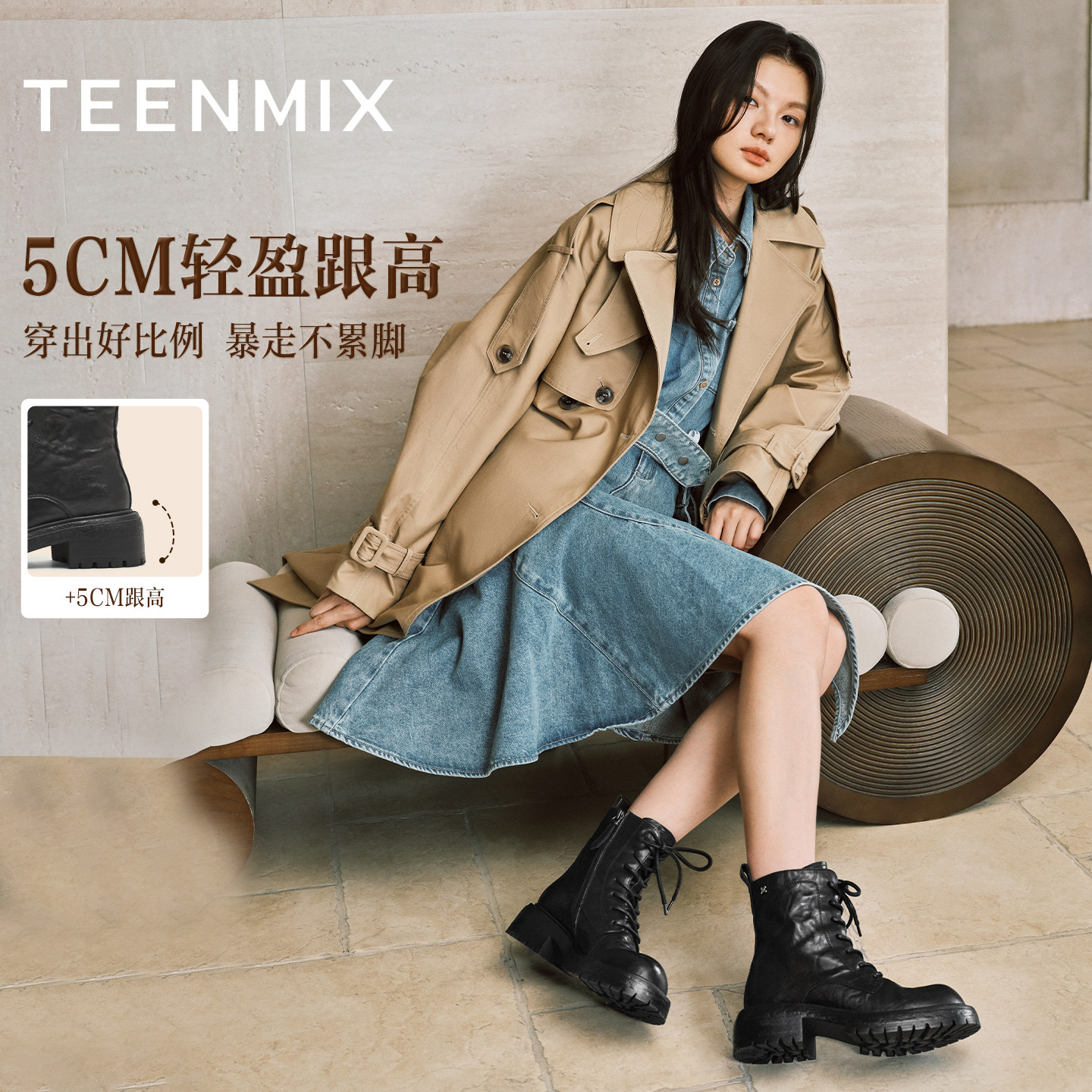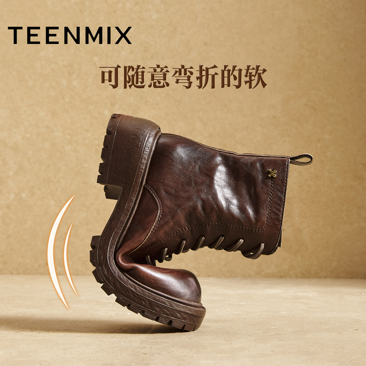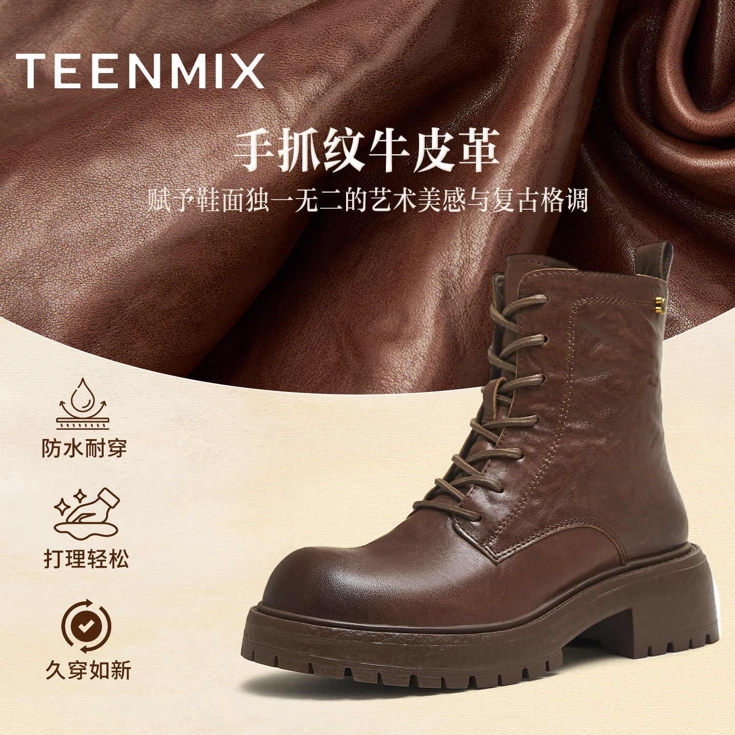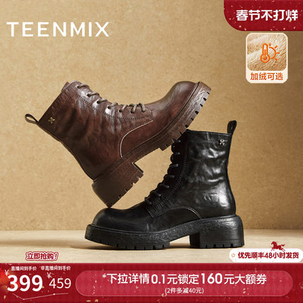 天美意复古英伦风厚底加绒马丁靴女鞋子冬新款休闲短靴时装靴皮靴