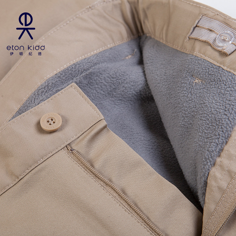 伊顿纪德2025冬款儿童装藏青色保暖双层摇粒绒休闲长裤16K062