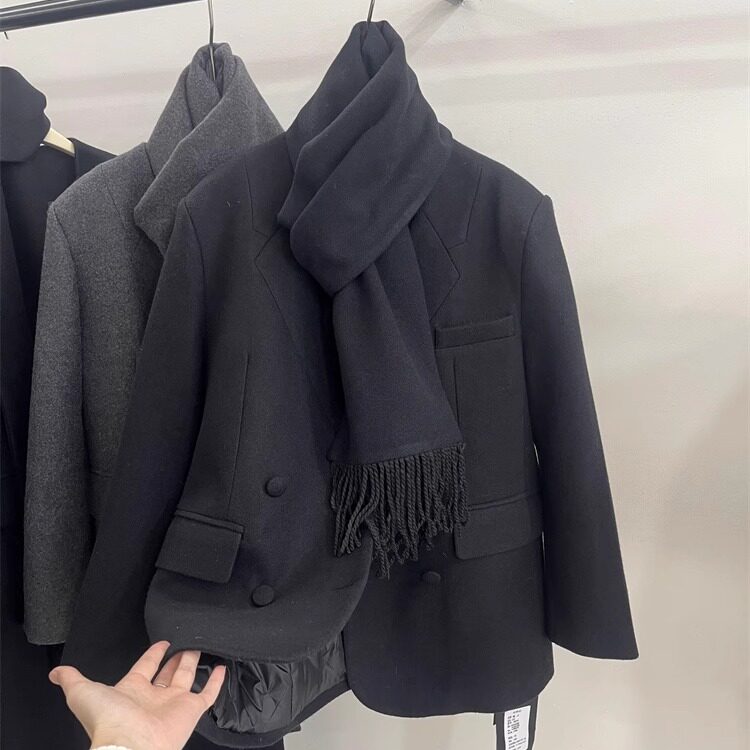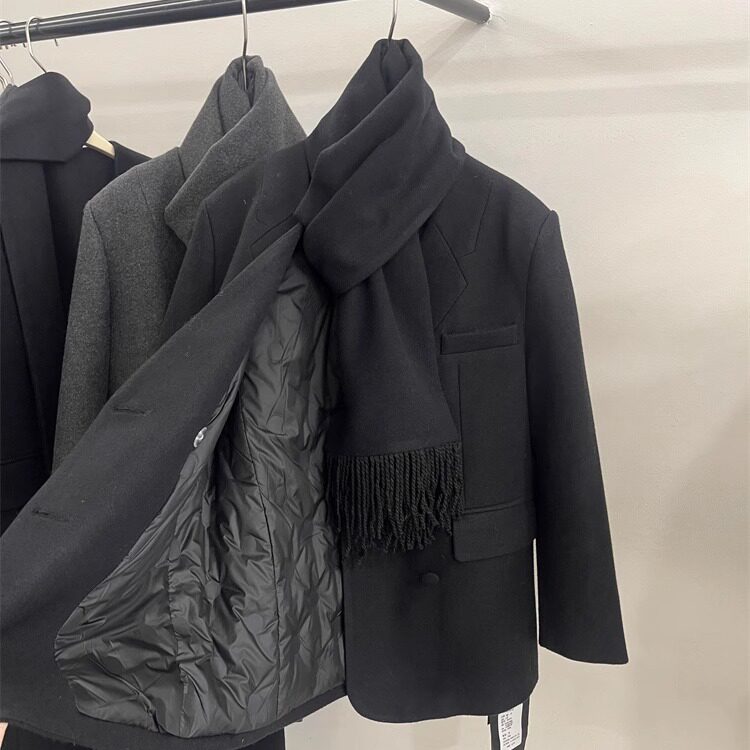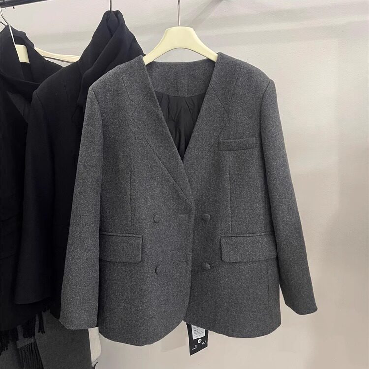 爵莱菲大码韩版双排扣围巾西装羽绒服女冬气质内胆白鸭绒毛呢外套