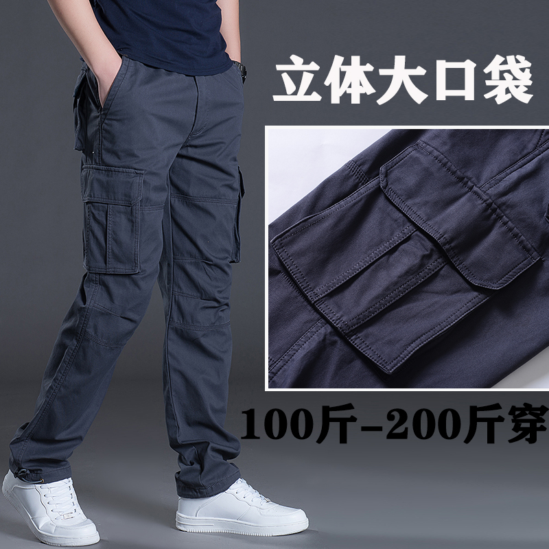 男裤纯棉机能工装裤男宽松直筒裤子春季休闲长裤春秋多口袋工作裤