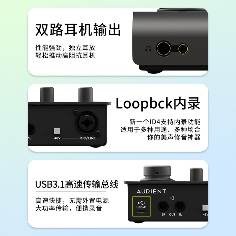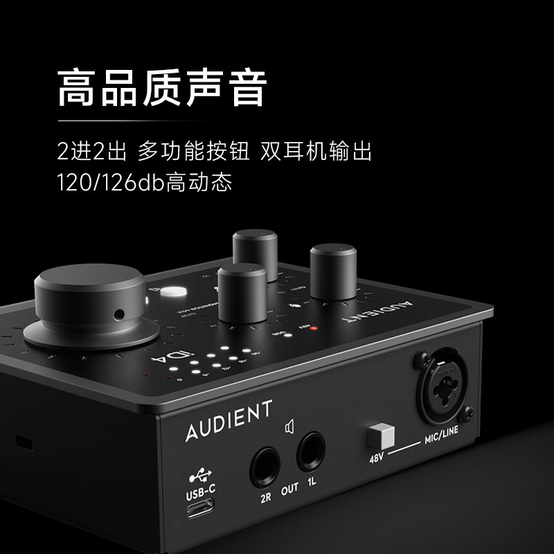Audient iD4 MKII/iD14声卡录音编曲配音直播乐器专业音频接口USB