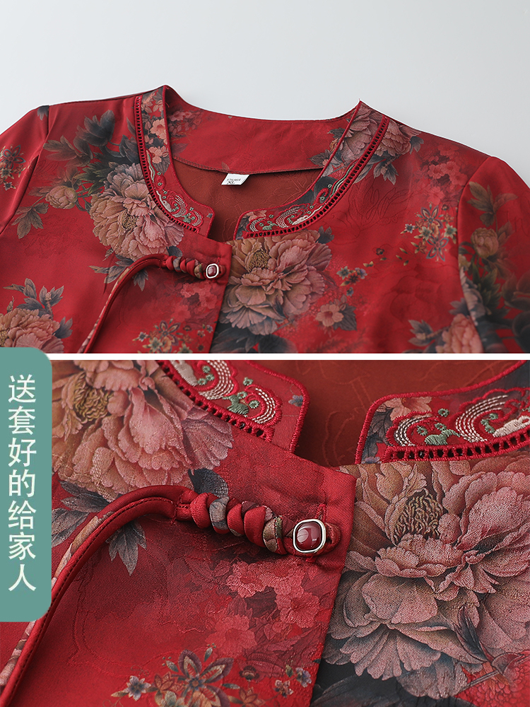 妈妈喜庆红色衬衫上衣+裤子