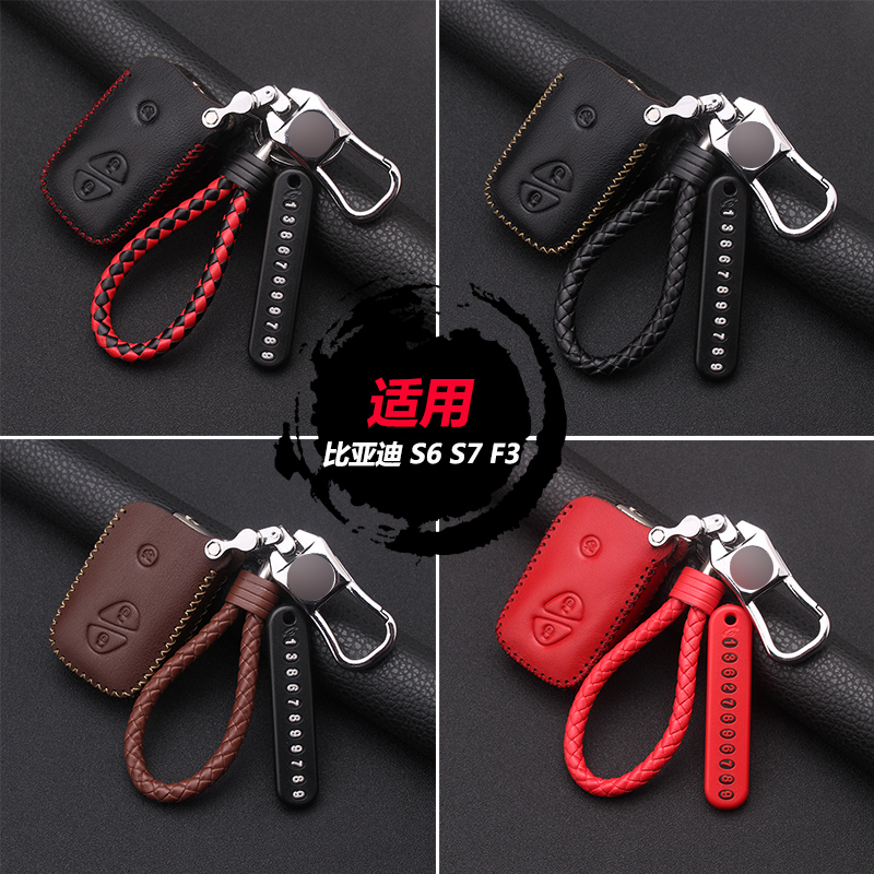 比亚迪S6 S7 F3汽车真皮钥匙包 F0新F3车用真皮钥匙套 钥匙扣真皮