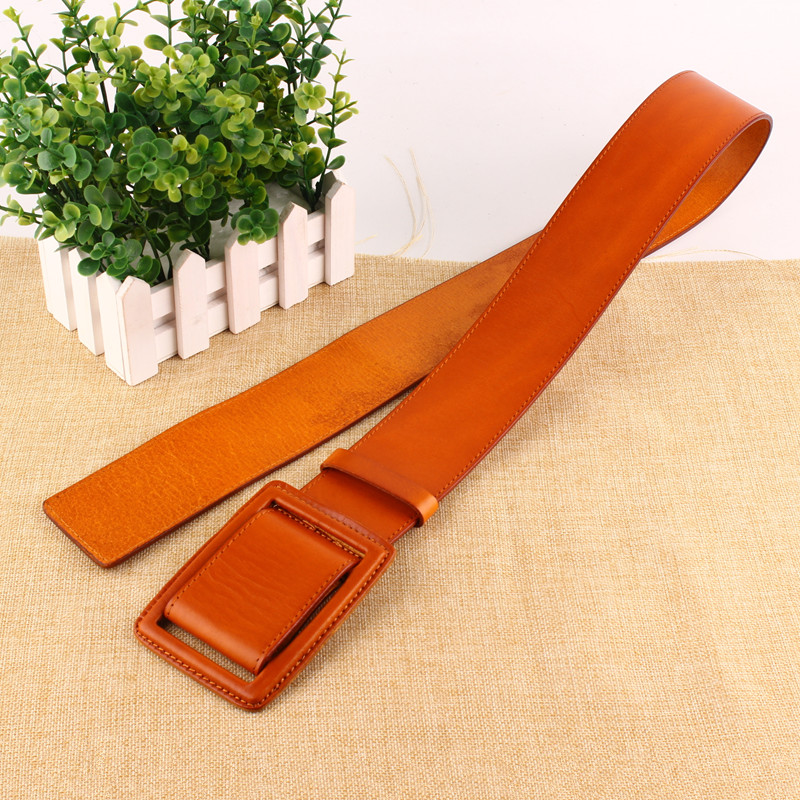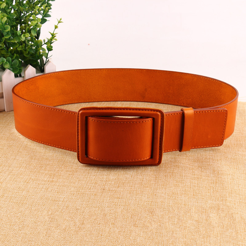 简约百搭皮带女款真皮装饰腰带纯牛皮宽腰封配连衣裙大衣红色黑色